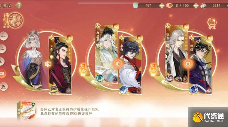 然后七天后张良就出来了,pvp可以将最后一个位置换成张良。如果出白居易就可以拉白居易了,如果没出就先考虑一下我后面说的几个角色或者张良。