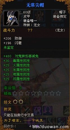 传奇蓝色装备 (无常尖帽)所有职业被动都一样
