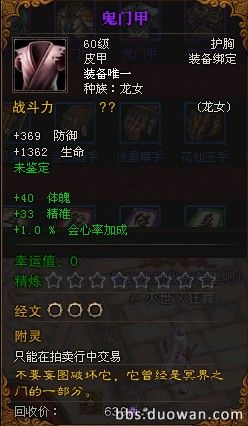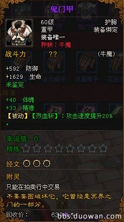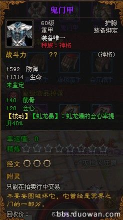 终极BOSS 痴 掉落的传奇紫色装备(鬼门甲)