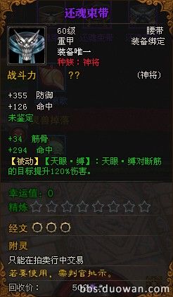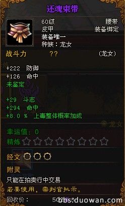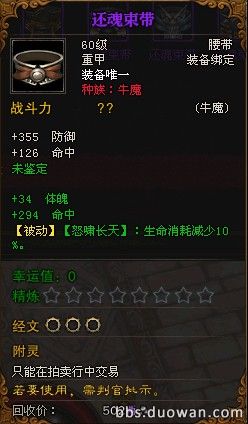 第2个 BOSS 蔓殊 和中级BOSS 沙华掉落的传奇紫色装备 (还魂束带)