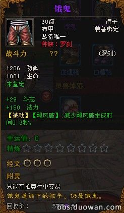 60蓝色装备 (血遁靴)所有职业被动都一样