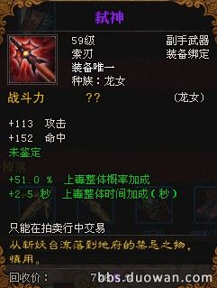 终极BOSS 魃川鬼王 掉落的传奇龙女紫色副手武器 (弑神)