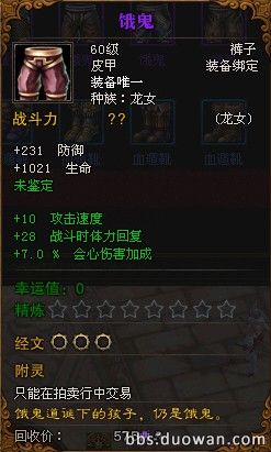 第一个BOSS 天生鬼母 掉落的传奇紫色装备 (饿鬼)