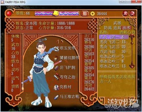 心力极限到120后练级的快感明显上升,休息一次放三下和四下的爽快度完全不能比,坚持升到30级,因为到30级四级符剑法术打人是1000血,正好可以灭掉之后池塘底部的大虾(1000血,伤害150-240,一发不能灭掉非常麻烦)