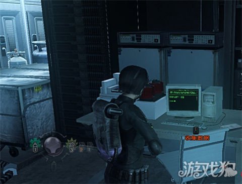 消灭几个杂兵,途中有一台可以收集情报的电脑