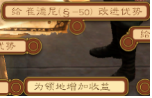 X:提高赋税的代价是-5忠诚,资助的代价是50大洋。