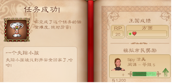 你可以从完成任务获得RP、金币、经验的奖励,方面那一栏的奖励,表示如果你完成该任务你的王国会在这些方面得到提升。上图中表示此任务可以提升王国的安全以及文化程度。