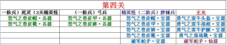 以下是张飞各装备的怪物掉落,供玩家们参考。
