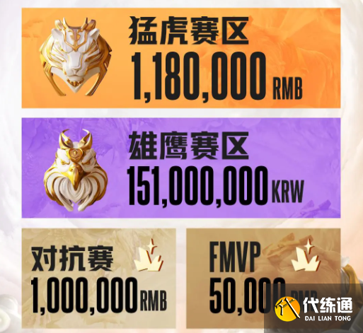 韩国雄鹰赛区:冠军奖金74.6万元;
