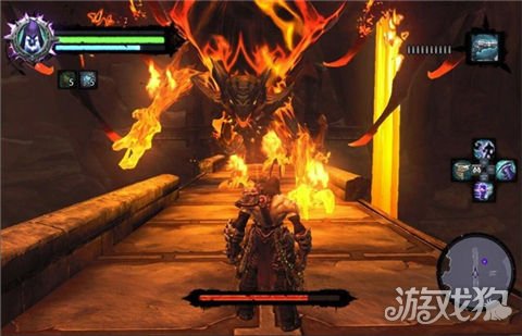 然后能看到一片火海,一只全身是火的大鸟就在中间的平台上,直接用技能死亡之握上高台即可开始boss战。