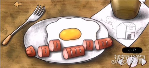 5.捡起地上的纸条,可以判断看出来这是香肠食物上的线条有关的,根据香肠上的线条,再根据纸条上的等式,还差最后一个符号,就可以解出等式了,1加1乘1除3减1什么2。接下来继续寻找新的线索。