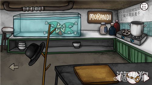 3.来到小饭店,但是这次里面已经没有客人和服务员了,点击桌子上的食物获得铁丝和小刀,然后进入厨房里面,这里大厨已经不见了,点击灶台上获得录像带,然后再点击左侧墙壁上的线路盒,获得钥匙道具;