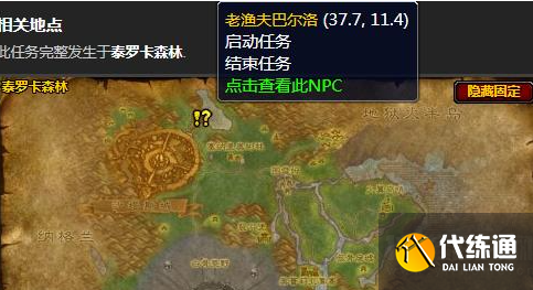 1.泰罗卡森林老渔夫巴尔洛可以接受魔兽世界城的鳄鱼任务,坐标是(37.7,11.4)。