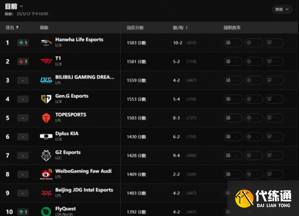 《英雄联盟》2025官方全球战队战力排行榜一览_lol战斗力排行榜