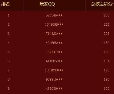 7、排行榜半小时更新一次,若排行榜显示的挖宝积分与实际不符,请稍后重新登录刷新即可;