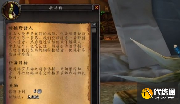 3、在格罗多姆农场里能接到的最大的一个任务就是诱捕野猪人,需要使用到格罗多姆之网,和酒馆门口的托格莉对话即可。