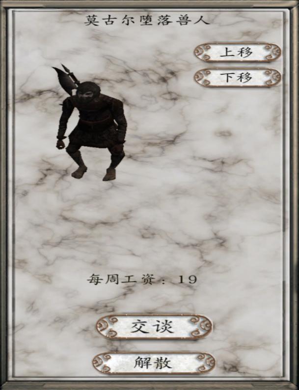 为啥要单独拿出来这个兵种呢?玩家们看到这货背后的那个大斧子没有?我猜你也想到了吧,没错,这货就是北方半兽人中唯一的双手武器步兵,这玩意的斧头伤害是40,威力非常之大,如果是上劈基本能一斧子秒一精灵,这种恐怖的战斗力只要一推上前线,就能带给你无尽的惊喜,有一次我的莫古尔兽人连续砍死了5个精灵步兵!!对于一个根本不奢望半兽人能1挑1的用户来说,这简直就是奇迹啊!!!我在此强烈推荐玩家们去多尔哥多雇佣一些多尔多哥兽人,将他们全部培养成莫古尔堕落兽人,他们强大的战斗力会给精灵造成巨大的伤口的。
