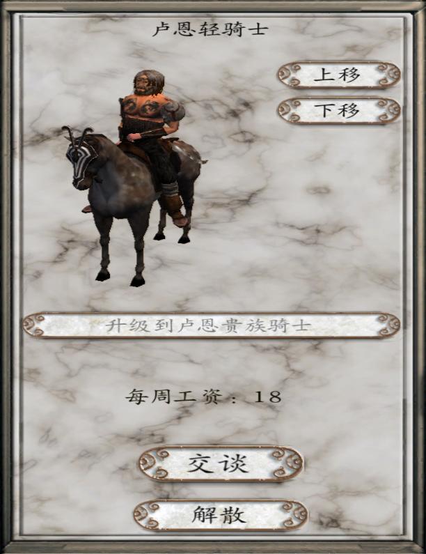 玩家们能看出来这货跟上面鲁恩轻骑士之间的关系吧?没错,他们之间是兵种树的关系,从头盔到盔甲,从武器到盾牌,简直就是天壤之别!!而且价格非常便宜,工资加了13块钱,战斗力却成倍上升!这就是整个北方最好的骑兵单位!相比狼骑兵,他最大的优势就在于能很好的压制敌人的骑兵部队,这也是鲁恩贵族骑兵最大的用处!!如果一只半兽人拥有了一小队鲁恩贵族骑兵,它就再也不用害怕敌人骑兵高大的坐骑与马上单挑作战能力了!!