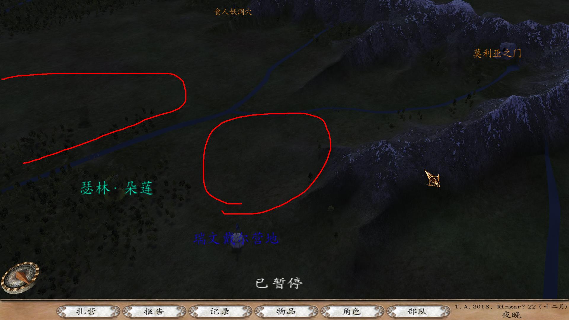 我建议玩家们从上图的河流以北走,这样是最安全的,因为这样走你遇到瑞文戴尔的机会就更少,但是也不代表那里就没精灵,有,但是基本都是些侦察队什么的,那种看到你就会跑的那种。