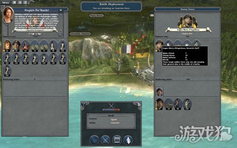 在过场画面你可以看到你的部队和敌人部队的将领名称;还有你的可布防的范围,蓝色为你的部队的布防范围,红色为敌人的布防范围