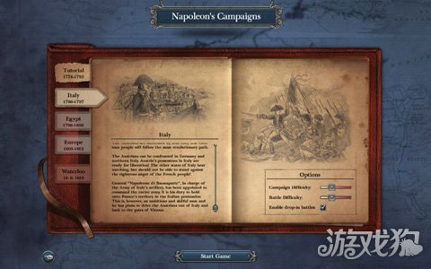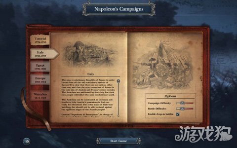 教程就不做多叙述了,主要是一些以拿破仑从出生到意大利战役之前的故事为背景,进行游戏说明