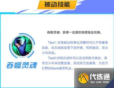 Tips1:对线被远程单位风筝时可以不用着急回家,在兵线收至塔下的时候,利用被动,攻击小兵回血。