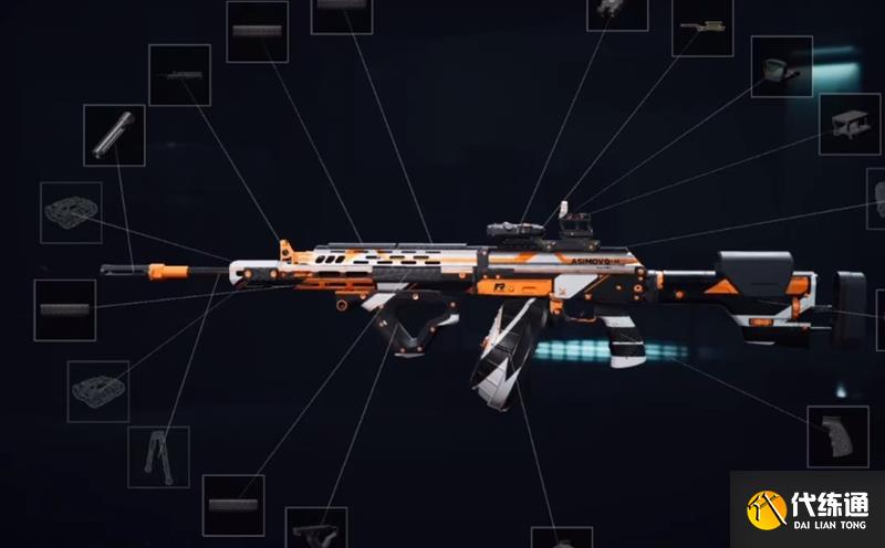 武器配件分别是:堡垒水平补偿器、紫色激光镭指、精英脚架长枪管、贴片全选蟒蛇护木片、棱镜阻手器、泽宁特拉机柄、准直式瞄准镜、PT1特种枪托、AK镂空握把、AKS74U延长弹匣45发、黑色快拔套。