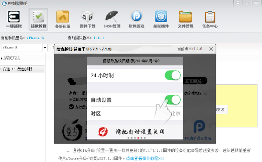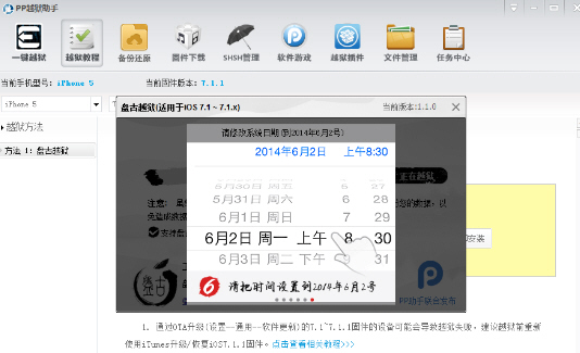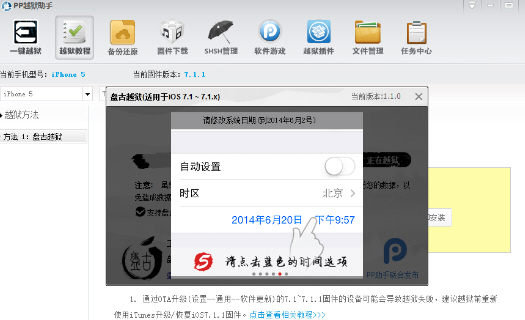 第五步:请根据【盘古】越狱工具提示修改iOS设备系统日期为:2014年06月02日前。