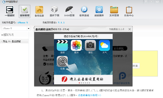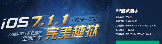 第一步:下载iOS7.1.2完美越狱工具——PP越狱助手>>点击下载