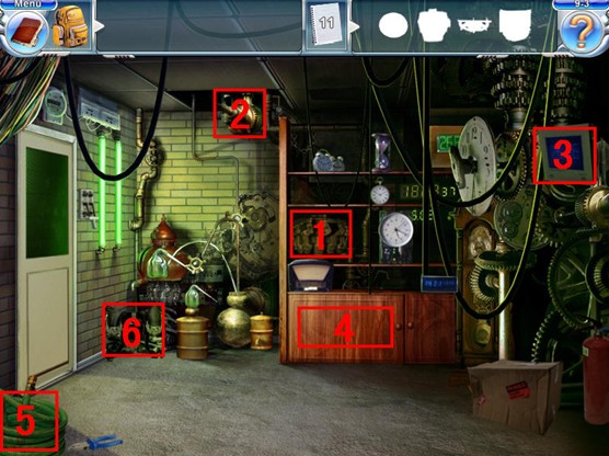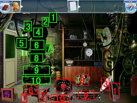 9-3、找到时光机的所有零件。先在图一找到6个物品,再去图二找其他的5个,最好按照数字顺序,特别是图二上先找到7、8、9才能点10。图一: