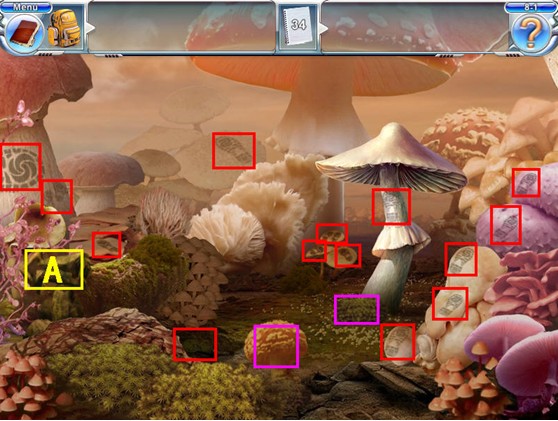 8-1、找到所有TOM的脚印,总共34个之多。图一中可以找到18个,紫色框内是隐藏在物品后面的,有些地方是一对脚印。找齐18个后点A处的箭头去下个图。图一: