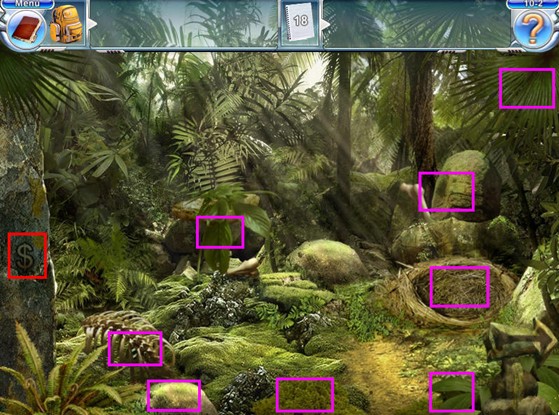 10-2、还要帮他找符号标志。在图一中有9个,只有一个符号是在表面上的,其他的都在物品后面隐藏着,找齐9个去下一个图。图一: