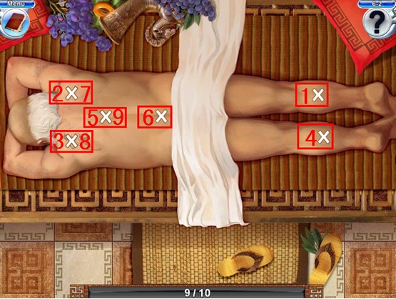 6-2、记忆力游戏,按找出现的顺序点他身上的X,后面有点难度,但是记忆规律还是比较简单的,不行就多试几次,一共需要完成10次才过关。前两关没贴图,后面八关图如下: