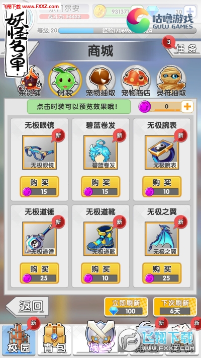 时装算是《妖怪名单》的一大亮点,用户可以随意搭配各个部件。时装商店购买时需要专属的时装币,在闯关、至尊卡还有活动中攒齐足够的时装币后就可以去购买心仪的时装了。