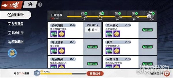 活动解读:每日任务种类多样,建议在挑选任务完成时优先选择与每周任务重合度高的,如消耗体力、恶灵狂怒等,其次再选择耗时少的如唤灵、商店购买等,如果没有合适的,也可以通过免费刷新来更换任务以此保证高效完成日常任务。