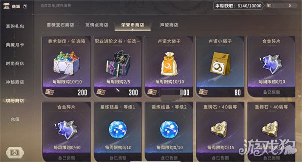 4、接着玩家可以进入到荣誉商店,所有的物品每周都需要选择买买,而如果荣誉币不足够,玩家可以选择不去购买合金碎片,又或者是奥术刻印。因为要想获取合金碎片,目前只有一种方法是通过紫色装备分解。天赋点目前是够用的,如果不够也可以去参加试炼之路,然后获取。
