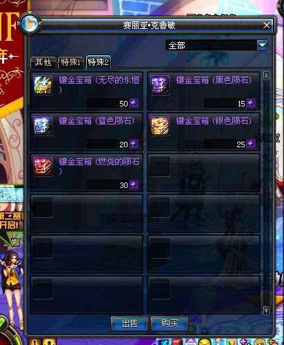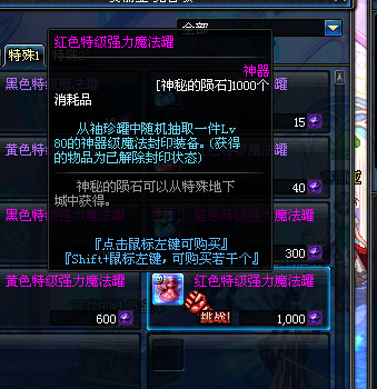 在NPC赛利亚的商店,有特殊1和特殊2两个选项,神秘的陨石可以在这里兑换很多好东西哦。
