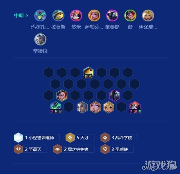 1、前期推荐用辛德拉带装备打工,优先做头盔+法爆,围绕星之守护者和战斗学院开羁绊。