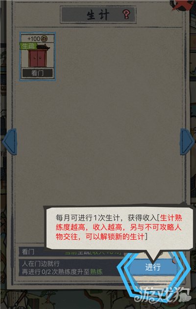 生计熟练度越高,收入越高,另与不可攻略人物交往,可以解锁新的生计。