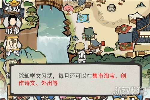 除却学文习武,每月还可以在集市淘宝、创作诗文、外出等。