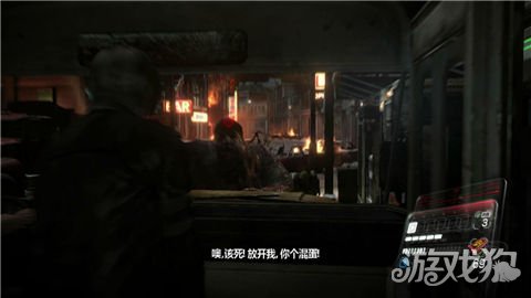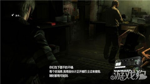 1.过道的门没有电源无法开启,穿过招待大堂跟随人影,遇到被感染的市政人员,里昂答应营救他的女儿丽丝