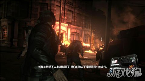 8.出门后见到几名正在奋战的幸存者,解决他们面前的敌人后,会出现喉部囊肿的发令者,(目测他的鸣叫能招引丧尸并区域性的提升病毒活性,意思就是说你得先解决它).顺便带一句,如果你被冲来的消防车碾死了,记下位置,下次离那地远远的就行,最后在提示下射击地面,引燃汽油.在爆炸中战斗告一段落.进入楼道时留意储物间里有数枚燃烧弹.
