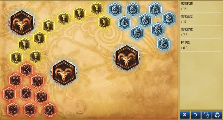 红色符文带上法术穿透,对于法师来说必须的属性,对于老头来说也是如此,黄色固定护甲,老头是一个十分脆弱的法师,护甲能够很好地增加他的抗性,防止被敌方物理型英雄秒掉,在线上也能够抵挡小兵的伤害。蓝色带上冷却时间或者魔抗,小编这里没有足够的冷却就只好都打上魔抗了。紫色精华部分可以考虑法强,最大化老头的伤害,且大招复活站起来的血量也是更具老头的法强来决定的,带上法强精华十分好用。
