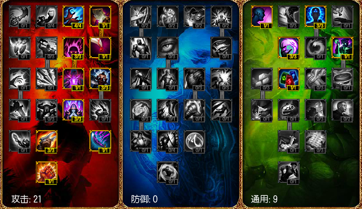 21-0-9的传统法师天赋即可,虽然老头中单辅助性更让人看重,但是要想要前期对线有足够的资本,21点的攻击天赋还是必须点出来的,冷却时间天赋必点,最右边的一排都十分的好用,可以考虑都点出来,配合前期多兰戒的回蓝,能够很好地增加老头的续航能力,死神天赋也能增加老头的伤害能力。