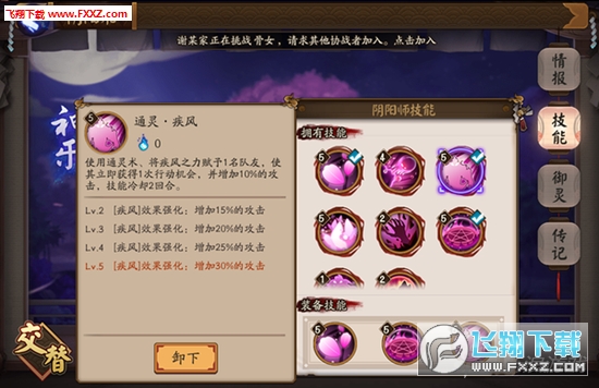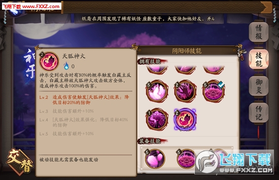 通灵·疾风:另式神直接行动,同时增加攻击力,新版已更改了疾风原来会给鬼火的bug,请pvp的时候注意一下。疾风是神乐最常用的技能,唯一的缺点就是开自动时太傻了。。。
