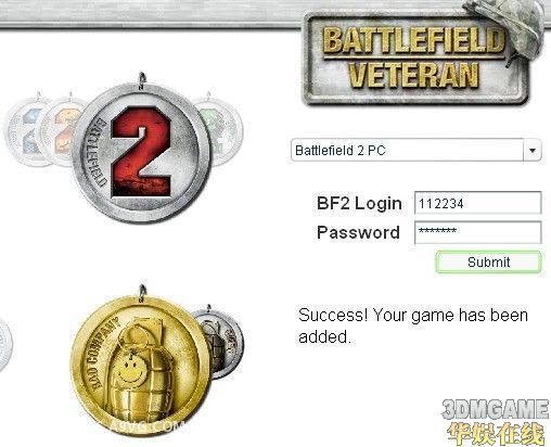 在老兵页面里选BF2 PC版,随便乱输入账号和密码就可以点亮BF2了,爆汗啊。如图