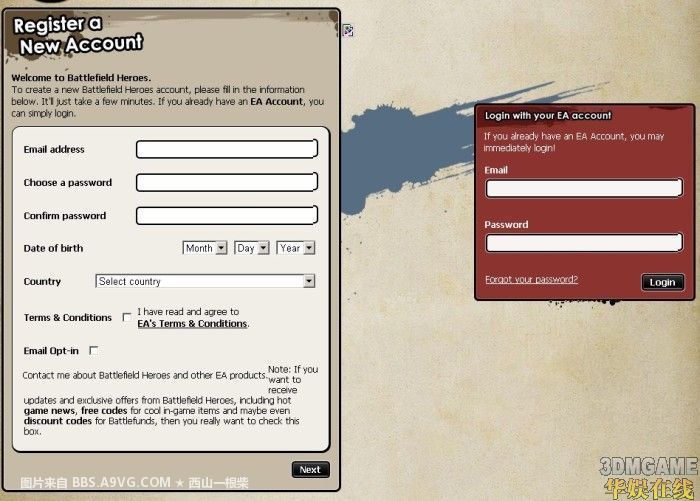 注册页面:https://www.battlefieldheroes.com/user/register