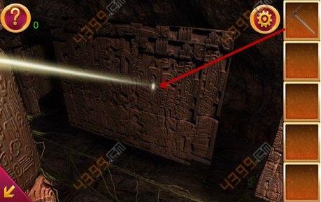 5、这时点击图中箭头所指位置,发现光传播到这面墙的内部,将木棍和铁锹组合起来,凿开墙壁,得到一个雕像。