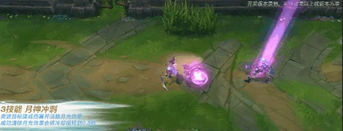 1、突进至目标附近,对落点范围内的所有敌人造成魔法伤害,并移除敌人身上的月光效果。若成功移除敌人身上的月光效果,该技能冷却时间缩减为0.5秒。