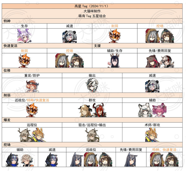 稀有tag包括:特种、位移、快速复活、削弱、爆发、控场、召唤、支援;